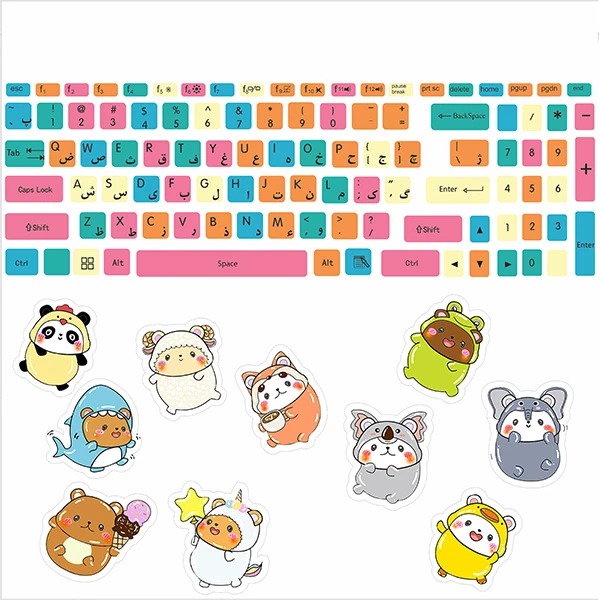 برچسب حروف فارسی کیبورد مدل animals-pack-01به همراه استیکرهای تزئینی 11 عددی