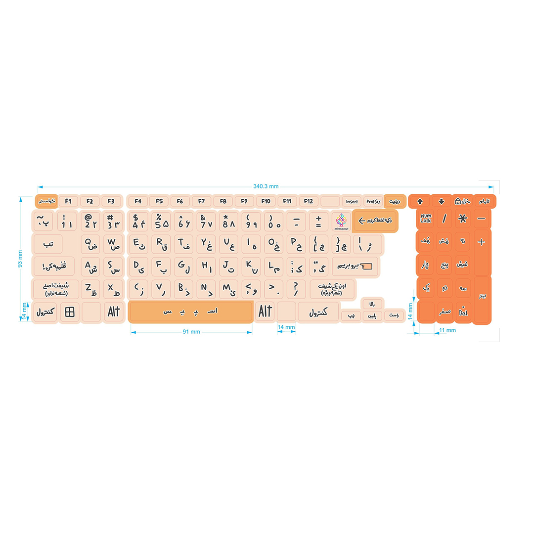 برچسب حروف فارسی کیبورد طرح دکمه غلط کردم مدل نارنجی 2