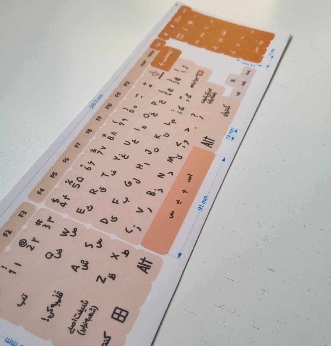 روی همه استیکر ها هم یک لایه شنی کشیدیم تا وقتی تایپ میکنید ؛ به مرور زمان رنگ ها پاک نشه حتی کم رنگ هم نشه تا بشه سال ها از وجودش روی کیبورد لذت برد .