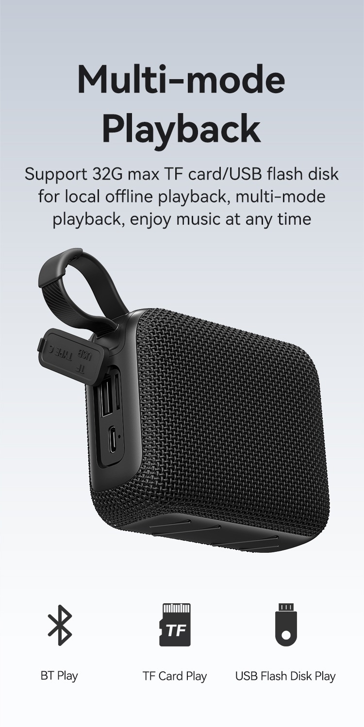 پشتیبانی از پخش چندگانه: بلوتوث، فلش USB، کارت حافظه TF تا ۳۲ گیگابایت