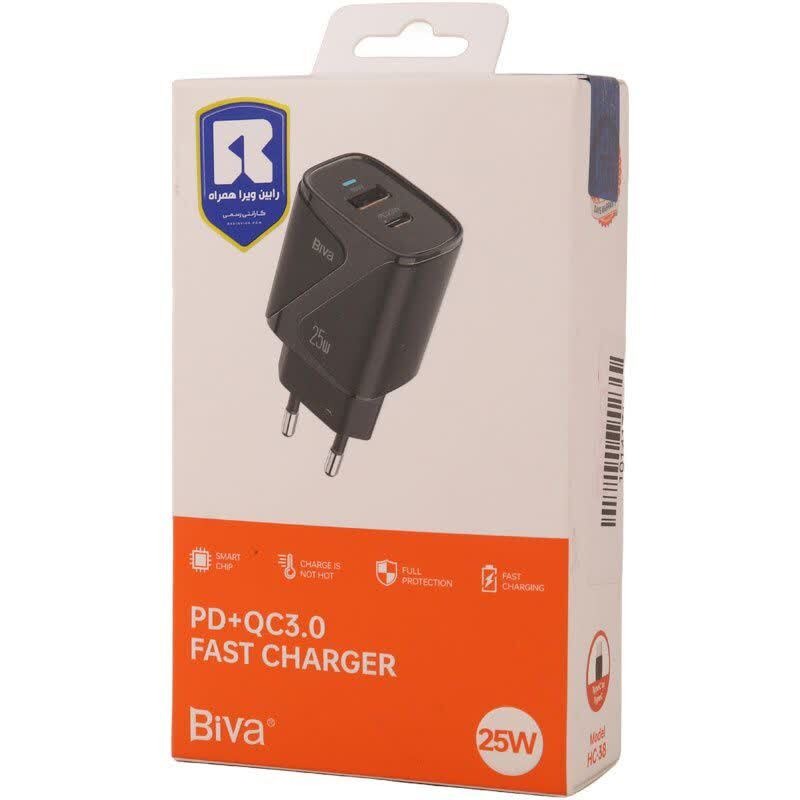 شارژر دیواری Biva مدل HC-38 یک آداپتور فست شارژ 20 وات با پشتیبانی از فناوریهای PD و QC3.0 است که با داشتن دو درگاه USB و Type-C امکان شارژ همزمان دستگاهها را فراهم میکند؛ درگاه USB تا 18 وات و درگاه Type-C تا 25 وات توان خروجی دارد. بدنه ساختهشده از ABS مقاوم در برابر حرارت، دوشاخه استاندارد EU مناسب پریزهای ایران و دریافت گواهیهای ایمنی FCC و CE از دیگر ویژگیهای این شارژر بوده و آن را به گزینهای مناسب برای شارژ سریع و ایمن گوشی و گجتهای مختلف تبدیل میکند.