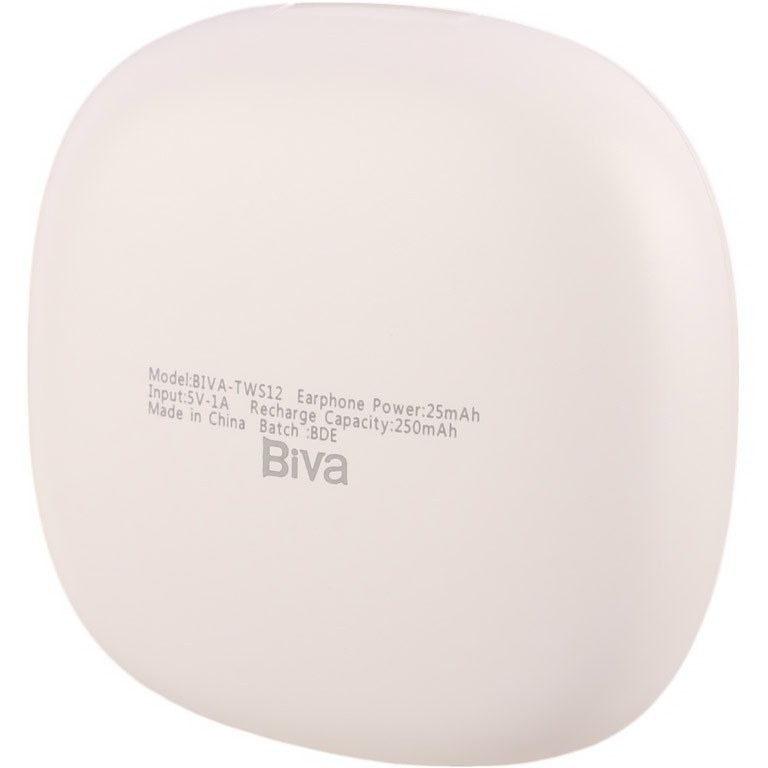 دارای باتری کیس 350 میلی آمپری ظرفیت کیس شارژ هندزفری بیوا TWS-12 برابر 350 میلی آمپر ساعت و هر کدام از گوشی ها 35 میلی آمپر ساعت است و شما با هندزفری Biva TWS 12 می توانید به مدت 5 ساعت برای شنیدن موسیقی و 5 ساعت برای مکالمه به صورت مداوم از آن استفاده کنید. برای شارژ کیس آن به حدود 1.5 ساعت زمان نیاز دارید. کیس شارژ هندزفری Biva TWS 12 میتواند 3 تا 4 بار گوشیهای آن را شارژ نماید. قابل ذکر است میزان شارژدهی بسته به نوع استفاده و میزان صدا می تواند تغییر کند. توجه کنید که تمام این اعداد در حالت آزمایشگاهی بوده و ممکن است بنا به شرایط واقعی عملکرد باتری متفاوت باشد.
