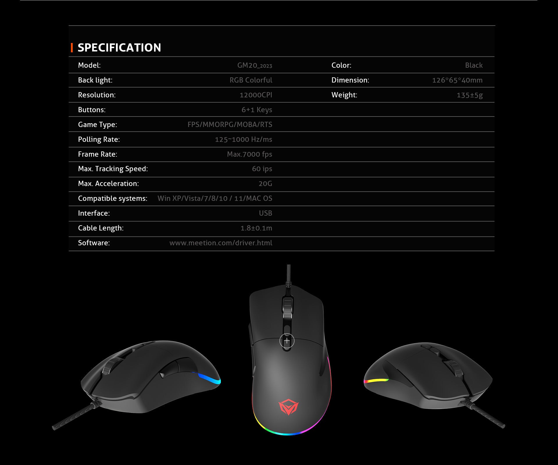 موس مخصوص بازی مدل MEETION MT-GM20 محصولی حرفهای از برند « میشن » (Meetion) است که برای کاربران علاقهمند به بازی طراحی و تولید شده است. در واقع این ماوس مشخصاتی دارد که آن را برای بازی کردن ایده ال میکند. از فاکتورهای خریدهای بسیار مهم هنگام تهیه ماوسهای گیمینگ میزان دقت و قابلیت کنترل دقت در آنها است. اگر شما به صورت حرفهای بازی میکنید یا قصد دارید یک گیمر حرفهای باشید باید از لوازم مخصوص بازی استفاده کنید. ماوس و کیبورد مهمترین ابزار یک گیمر محسوب میشود. ماوس و کیبورهای بازی علاوه بر ظاهر در عملکرد و کیفیت هم با ماوس و کیبورد ساده تفاوتهای زیادی دارند. شما میتوانید از ماوس بازی برای کاربریهای روزمره استفاده کنید اما استفاده از ماوس عادی برای بازی کار عاقلانهای نیست. یکی از برندهایی که در زمینه تولید ماوس برای بازی فعالیت دارد، میشن است. ماوس مخصوص بازی مدل MEETION MT-GM20 یکی از محصولات این برند معتبر است. اولین نکته و تفاوتی که ماوس بازی با ماوس ساده داشته ظاهر آن است. این مدل هم ظاهری متفاوت با ماوسهای ساده دارد. برای طراحی این ماوس از طراحی مدرن و خطهای شکسته نامتقارن استفاده شده است. ردراگون تلاش کرده تا علاوه بر ظاهر جذاب، استفاده از ماوس هم برای گیمر آسان باشد. همین باعث شده تا نحوه قرارگیری کلیدها و شکل کلی ماوس برای یک گیمر استاندارد است. شاید در نگاه اول تصور کنید استفاده از این طرحها برای زیبایی بیشتر باشد اما اینطور نیست. گیمرها ساعتها مشغول بازی کردن هستند و استرس و هیجان زیاد باعث عرق کردن دست میشود. هنگامی که دست عرق کند استفاده از ماوس سخت شده و میتواند تاثیر بسیاری روی بازی داشته باشد. یکی دیگر از مهمترین ویژگیهای این مدل نور پردازی chromatic RGB آن می باشد که به زیبایی دستگاه می افزاید.همچنین سطح موس از متریال مرغوب درست شده است که باعث می شود موس کیفیت ساخت بالایی داشته باشد و گریب موس را افزایش می دهد. هریک از دکمه ها توانایی تحمل حداقل 5 میلیون بار فشار را دارند. دکمه های این موس قابل برنامه ریزی می باشند که این ویژگی برای بازی بسیار مناسب می باشد. ماوس مخصوص بازی میشن مدل MEETION MT-GM20 دقتی برابر با 800/1200/1600/2400/4800 DPI دارد. برای سنجش دقت ماوس از واحد DPI استفاده میشود.